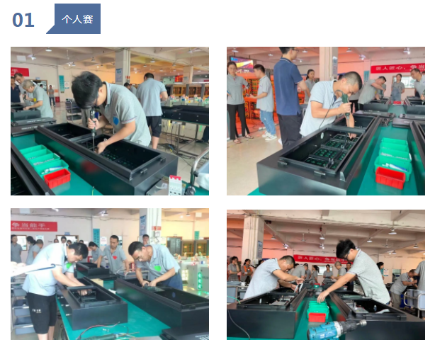 主持人一聲令下,比賽正式拉開了帷幕,只見各比賽人員手里不時(shí)變換著各種零件和工具∶螺絲釘、電鉆頭、單元板…雖然都是一樣的程序,但是每個(gè)人在工作中都總結(jié)出了自己的經(jīng)驗(yàn)和妙招。有的人在這個(gè)工藝駕輕就熟,有的人對(duì)那個(gè)工藝胸有成竹,你追我趕,真是八仙過(guò)海,各顯神通。每一個(gè)參賽選手都全神貫注,比賽現(xiàn)場(chǎng)雖然安靜,但處處透露著比賽的激烈。
