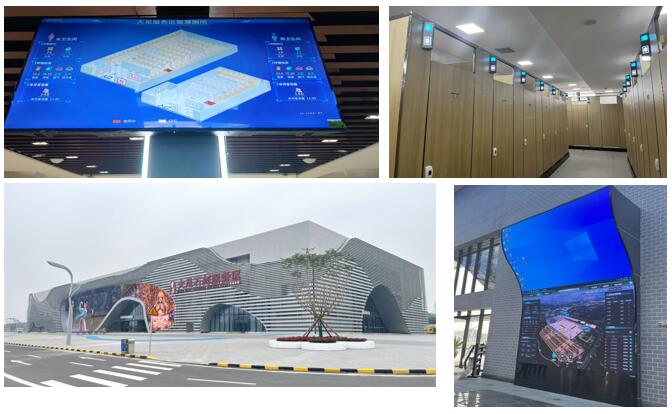在本次項目中,我公司提供智慧衛(wèi)生間導(dǎo)視系統(tǒng)、曲面小間距全彩屏、分流導(dǎo)視屏、門架情報板、多功能一體機等設(shè)備。